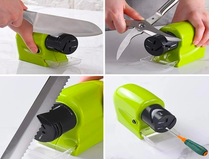 Com essa amolador você consegue amolar facas, tesouras, alicates de unhas e ferramentas em segundos e sem muito esforço porque esse amolador é elétrico.